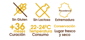 Jamón ibérico de bellota, sal, conservantes (E-250, E-252), antioxidantes (E-316) y azúcar. - Características Organolépticas: